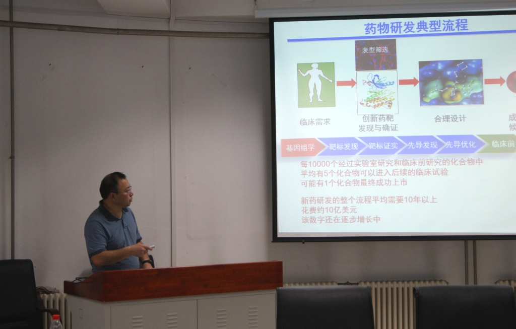 随着基因组学和蛋白组学的发展,越来越多的治疗新靶标不断涌现。针对新型抗肿瘤靶标的药物设计和机制研究,将为肿瘤的诊断和治疗开拓新的研究基础和思路。许永研究员运用计算化学生物学、药物化学和结构生物学等方法研究生物大分子的结构、功能及其与小分子相互作用,在此基础上针对重大疾病相关靶标进行药物设计研究。在报告中,许永研究员指出,用小分子化合物抑制核受体蛋白ROR-γ,可以降低抵抗性前列腺癌的雄激素受体(AR)水平,阻止肿瘤生长。这种新方法并没有直接靶向AR,而是抑制了AR蛋白的编码基因。降低AR水平可帮助患者战胜难治性前列腺癌,甚至超越现有的疗法。许永研究员的精彩报告引起与会师生的极大兴趣和关注,并对相关问题展开提问,许永研究员从专业角度一一解答。