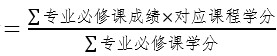 专业课加权平均成绩是指培养方案1-6学期专业基础课、专业主干课、专业发展课中的必修课程(见附件1)首次考试成绩按学分加权平均。具体计算公式为: