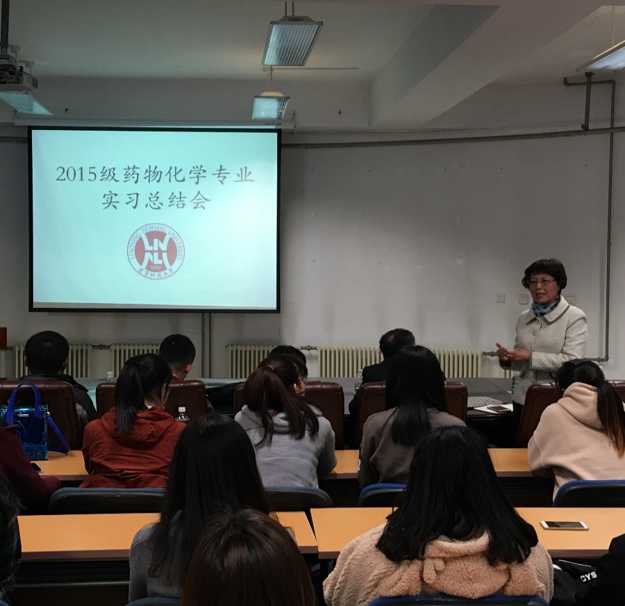 教学院长杨梅教授,邢永恒教授、赫春香教授、翁前峰教授、实习带队教师王澈、李坤老师以及药物化学专业和分析专业全体教师,2016级、2017级药物化学专业全体学生参加了此次总结会。会议由颜射