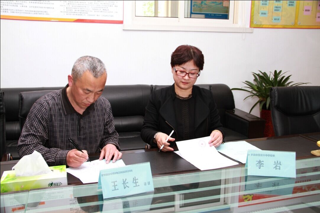 王长生院长(左)和三十中学校长李岩(右)在签署协议
