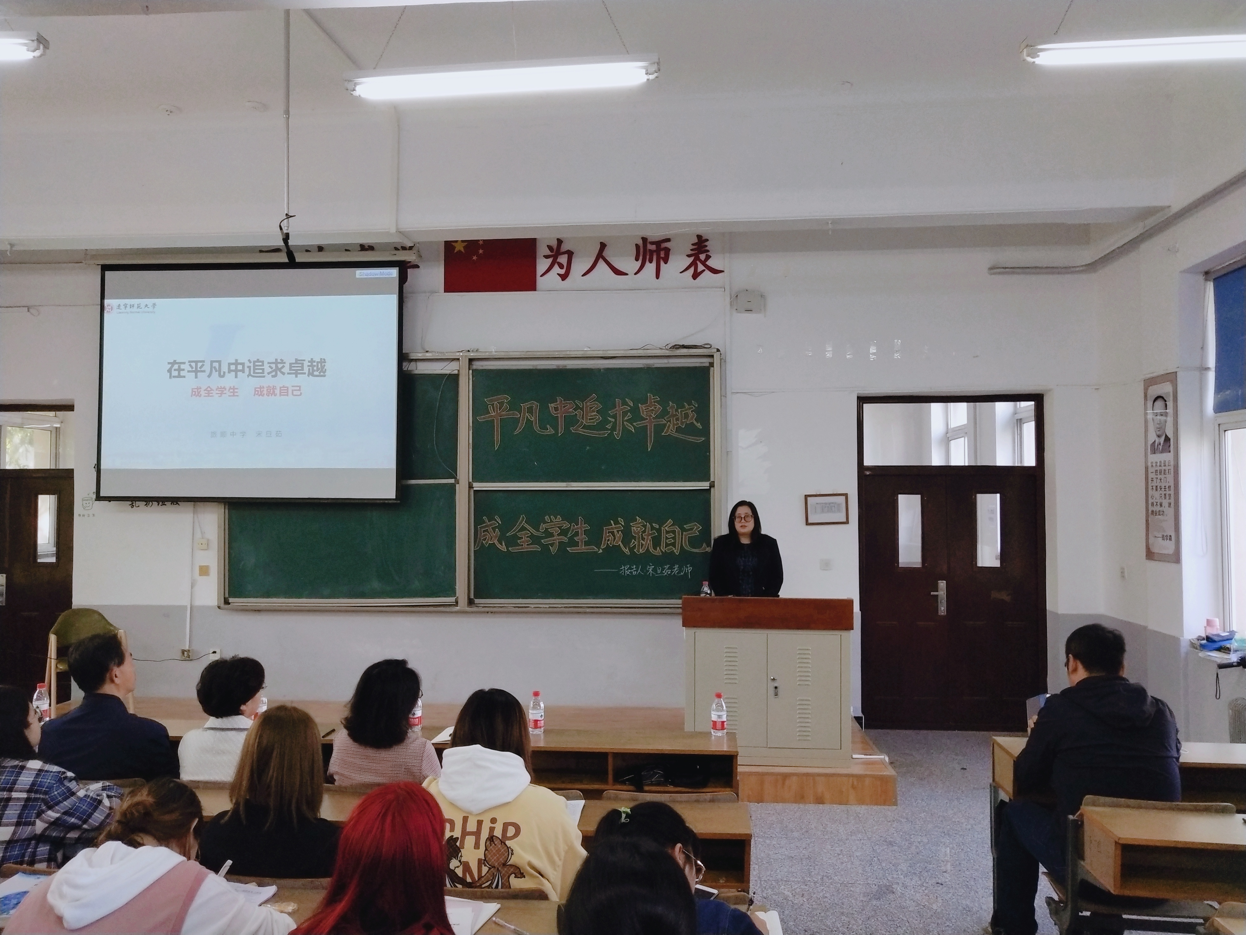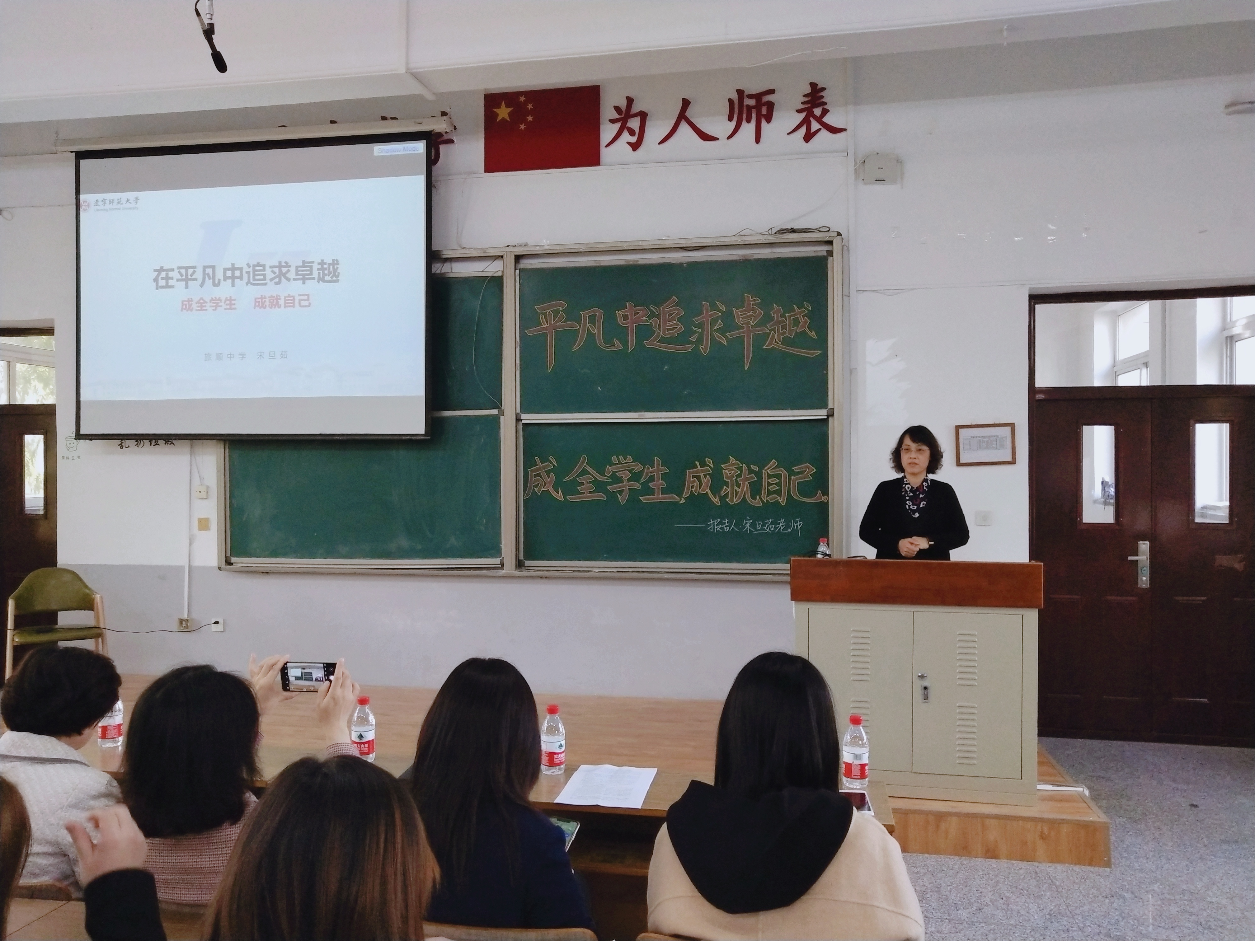 为进一步推进教师教育特色发展,加强师范生“立德树人、为党育人、为国育才”教育思想建设,全面提升师范生从教育人水平,我院于10月27日下午在外语楼七合堂开展了师范生“一践行三学会”主题系列报告会第五讲。本次报告会的主题为“在平凡中追求卓越,成全学生,成就自己”,主讲人为我院1992届本科毕业生,现执教于大连市旅顺中学的宋旦茹老师,一同前来的还有我院毕业生、大连市旅顺中学于红霞老师。出席本次报告会的我院领导及嘉宾有:学院党委书记刘智广、教学院长金晶、化学(师范)专业负责人杨梅、分析化学研究所赫春香、实验教学中心副主任张治广、化学教育研究所李书实及2017级、2018级本科师范生。本次报告会由学院教学院长金晶主持。