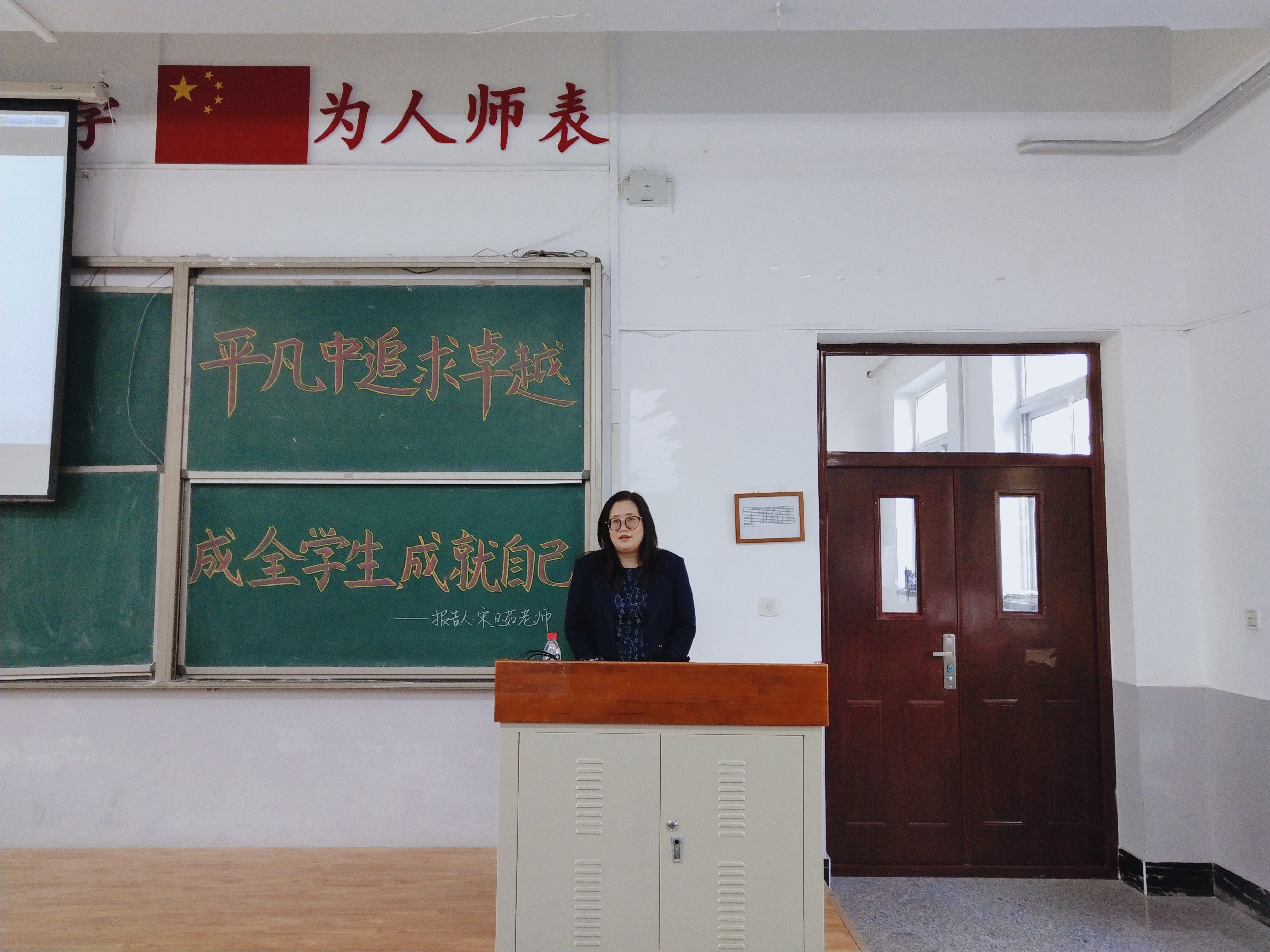 随后,宋旦茹老师正式开始报告。宋老师对学院的邀请表示真诚的感谢,回顾自身的从教经历并讲到:只要将自身工作做实做好,就一定能得到认同。宋老师将本次报告分为:“爱岗敬业”、“关爱学生”和“班级管理”三个方面与大家分享。
