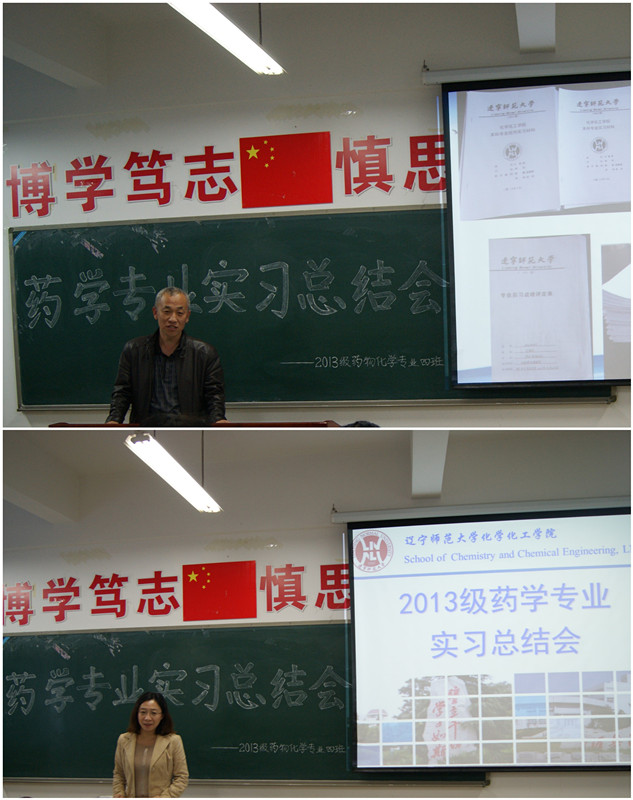 “本科教学质量月”系列活动之药学专业实习总结会在理化楼413教室召开。大连市药品检验所所长助理李军、人力资源办副主任彭玉涛、颜射