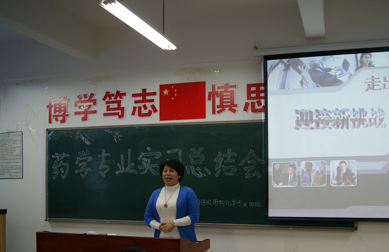院长王长生、教学院长长杨梅、药学专业实习指导教师徐李坤以及29名实习本科生参加总结会,会议由药物化学系主任徐缓主持。