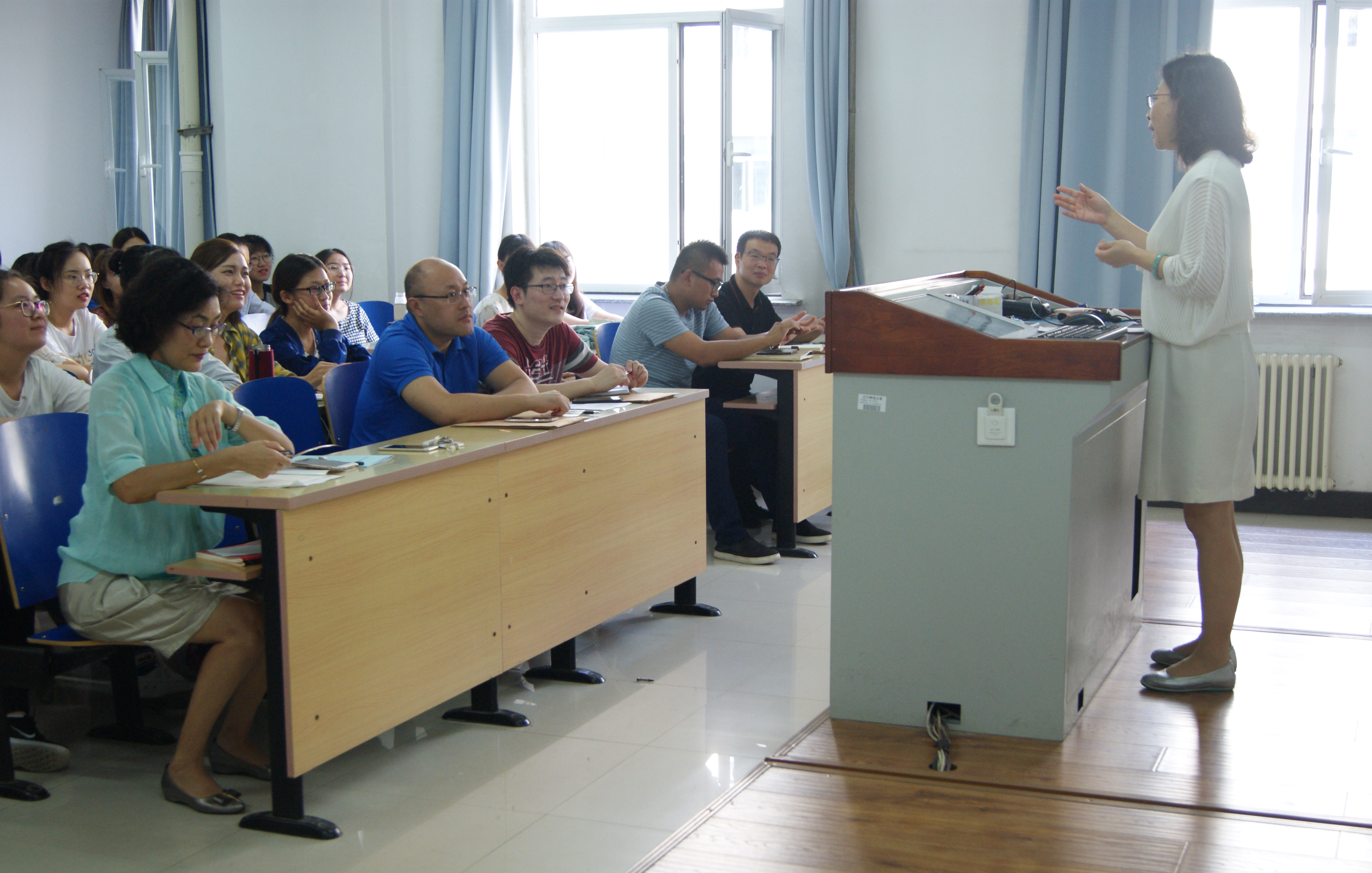 首先由王秋老师介绍了参加此次教育实习的各位指导教师,并对实习工作进行了具体布置。王秋老师对实习目的、实习任务、实习要求、注意事项等方面做了详细介绍,并根据往年经验总结了实习工作中容易出现的问题。