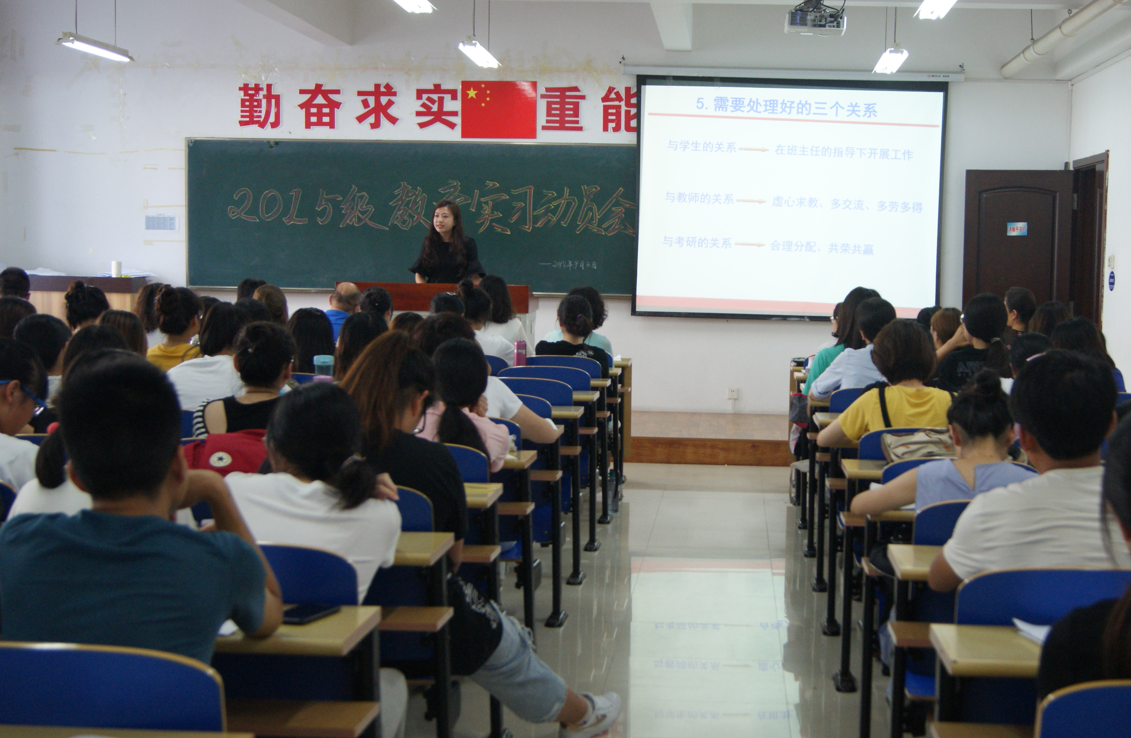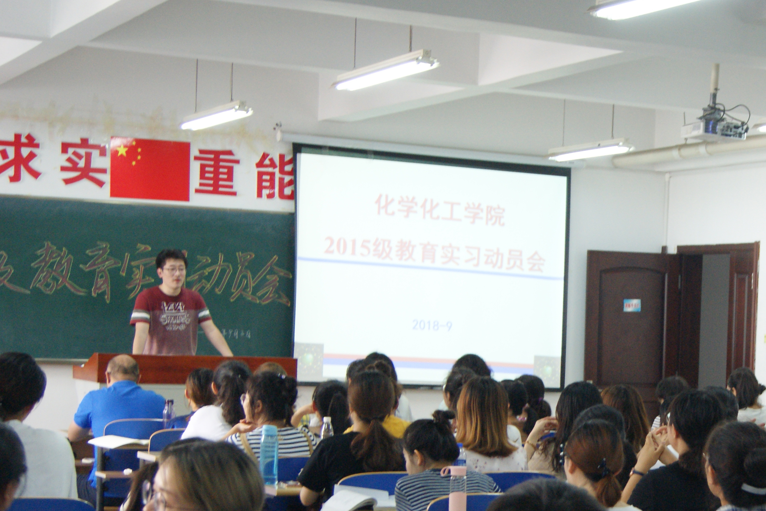 在理化楼C411教室召开了2015级本科生教育实习动员大会,2015级化学师范专业全体同学参加了此次动员会。