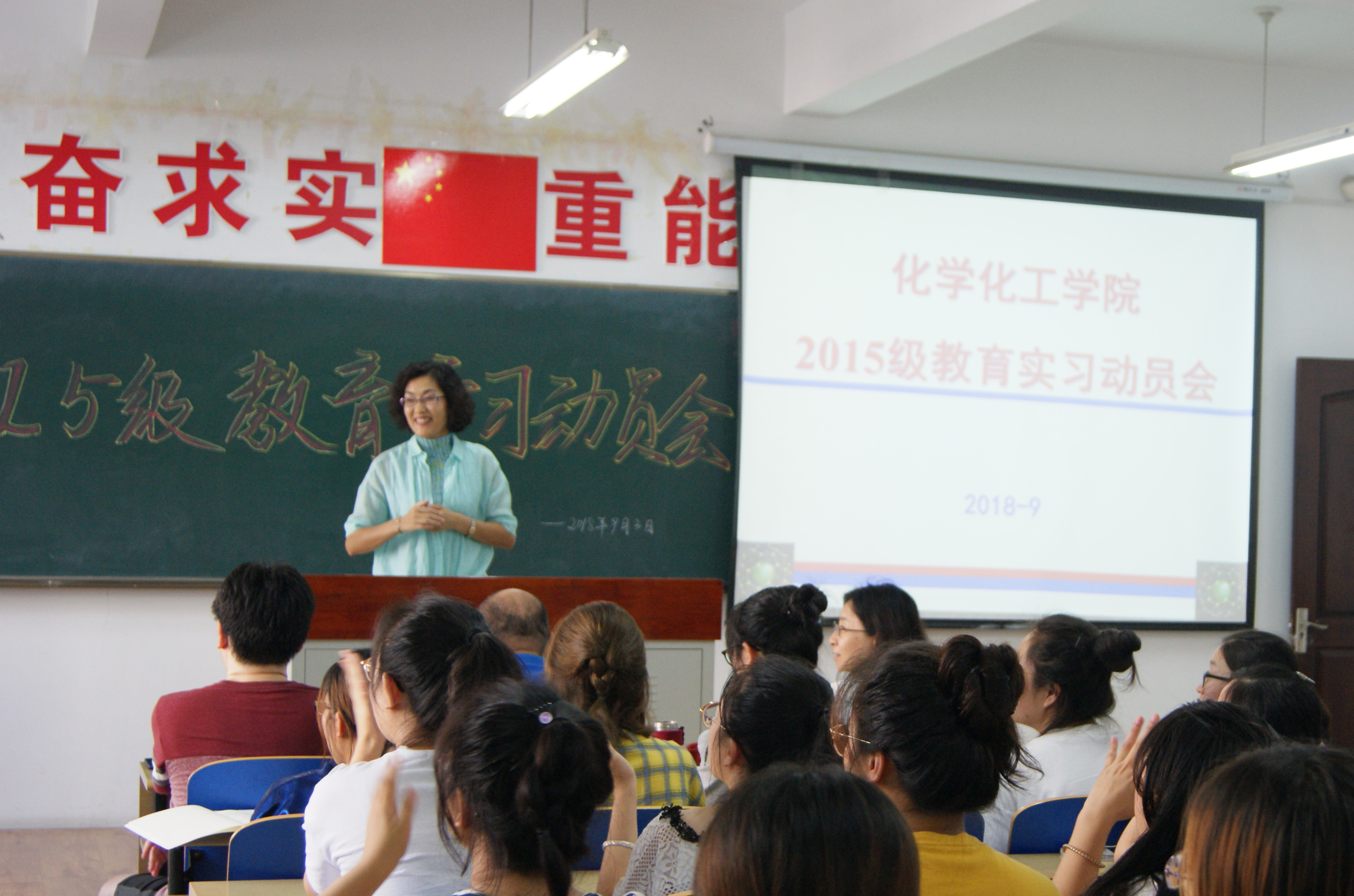 动员大会由李书实老师主持。此次教育实习的实习点包括大连市内的育明高中、辽师附中等6所重点中学以及辽阳市的集美中学。2015级化学师范专业86名同学将分散到各个实习点进行教育实习。此外还有9名同学将赴凌海市和大石桥市参加为期半年的顶岗实习工作。