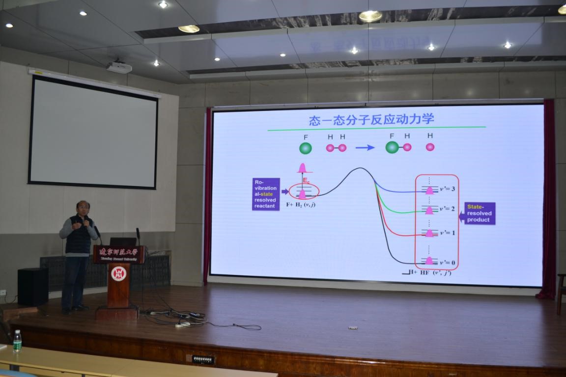 孙志刚研究员进行了题为“态-态分子反应动力学最新进展”的学术报告。他从自身的科研经历展开,强调了理论化学并不是偏门、无用的学科,我们能通过学习理论化学从而更深刻地理解化学反应,并向大家介绍了化学反应动力学的研究。