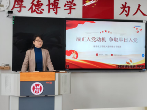 于理化楼 C416 组织开展第 81 期入党积极分子培训第一讲。本次培训由我院党委书记于伟主讲,主题为“端正入党动机 争取早日入党”。