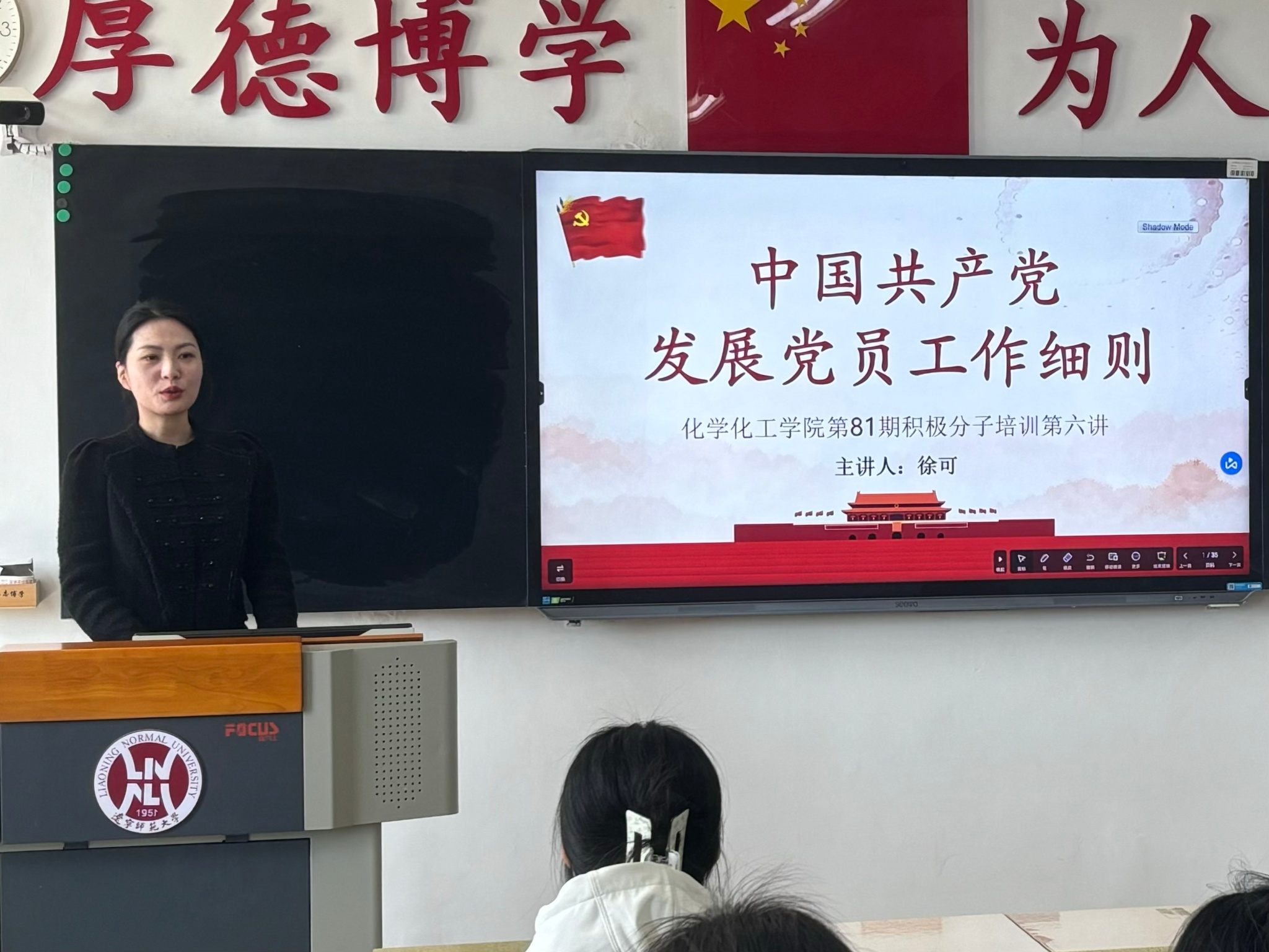本次培训徐可老师从申请入党、入党积极分子确定与培育工作、发展对象确定与考察、接收预备党员、预备党员的教育考察和转正等五个方面进行详细讲解,让入党积极分子清晰掌握入党的规范和要求。通过系统阐述申请入党条件、积极分子培育、发展对象考察、预备党员接收及转正的全过程,帮助大家明确每个阶段的任务和责任,引导其按标准严格要求自己,保证党员发展的质量,为党组织输送信念坚定、素质过硬的新鲜血液,增强党组织的凝聚力和战斗力 。