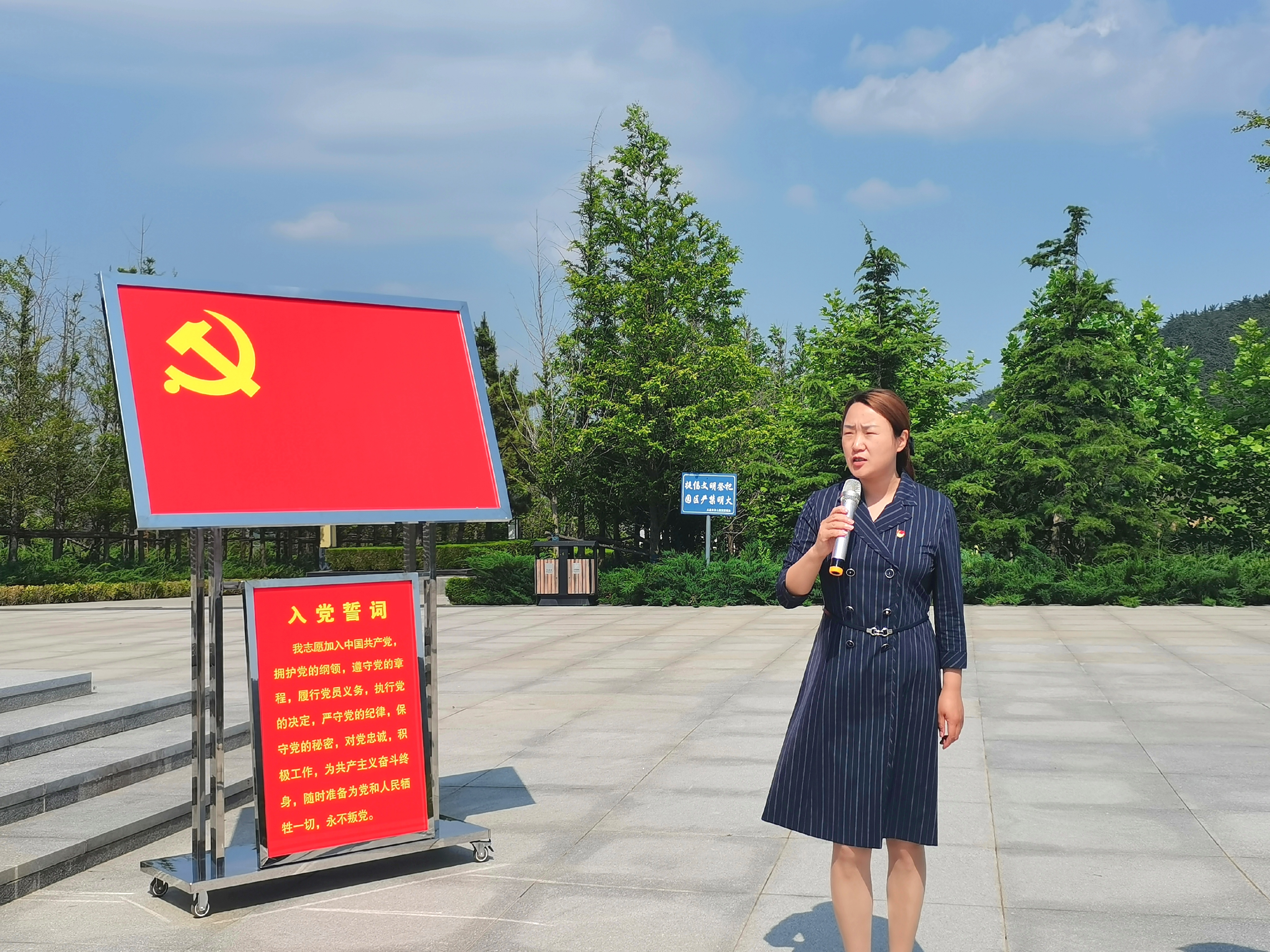 在烈士陵园纪念碑前,全体党员肃穆而立。在李金英书记的领誓下,全体党员面对庄严的党旗庄严宣誓。铿锵的誓词和坚定的承诺提醒着每一位党员要坚定理想信念,牢记初心使命,用实际行动砥砺奋进。