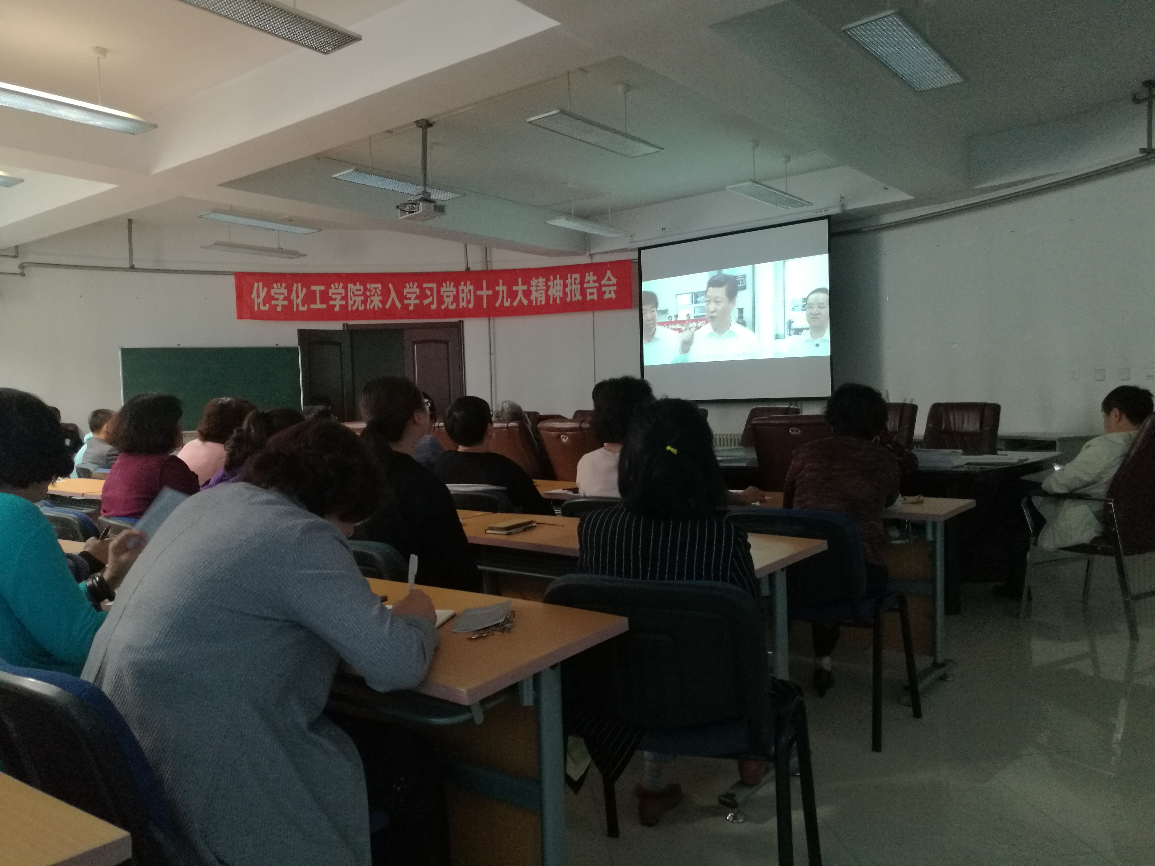 5月11日下午两点,我院党总支组织全体教职工在理化楼C区401集中观看了电影《厉害了,我的国》。该部影片全面展示了党的十八大以来我国所取得的辉煌成就,底气十足地告诉人们:今日中国,正前所未有地走近世界舞台的中心,前所未有地接近实现中华民族伟大复兴的梦想。