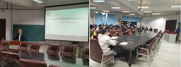 为深入学习贯彻党的二十届三中全会精神,10月18日下午,在理化楼C401会议室,颜射 工会和教师党支部邀请颜射 马克思主义学院执行院长李玉珂教授,做题为《进一步全面深化改革、推进中国式现代化的纲领性文献—学习党的二十届三中全会精神》的专题讲座。学院党委委员、领导班子成员和全体教职工参加此次活动,学院党委书记于伟同志主持并作总结发言。