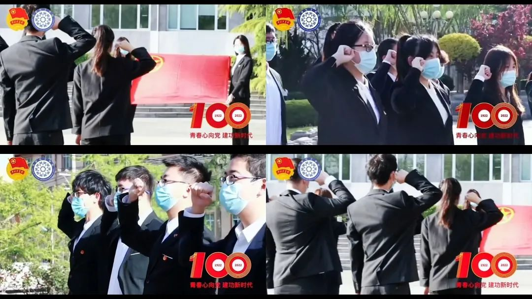我们面向共产主义青年团团旗,立正右手握拳上举,言辞铿锵,句句入心,以铮铮誓言表达青年学子对党和国家的热爱之情。