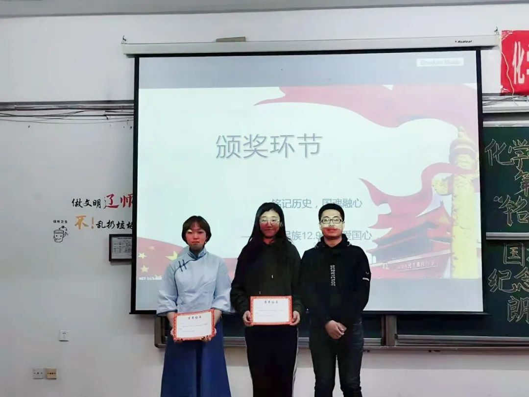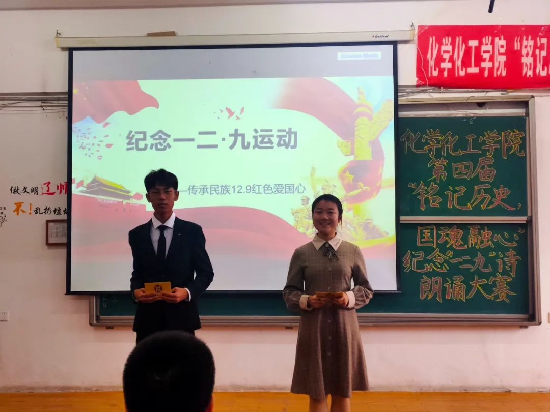 第四届“铭记历史,国魂融心”纪念“一二·九”朗诵比赛在文科楼201教室举行,以此纪念“一二·九”运动85周年。本次活动由颜射