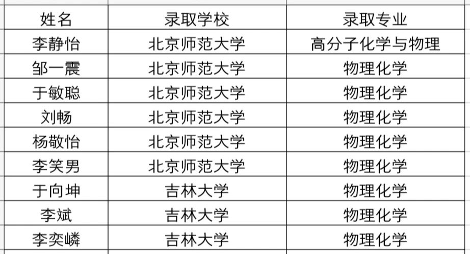 截至5月29日,我院共有86名同学顺利通过2020年全国研究生入学考试,考取院校涉及国内外20所知名高校与科研院所。其中保研同学共有9人,保送至北京师范大学6人,吉林大学3人。考研同学共77人,其中4名考取国外大学——英国华威大学1人,英国曼彻斯特大学1人,英国巴斯大学1人,英国约克大学1人。其他73名考研同学被分别录取至国内各知名大学,其中,中国科学院大学1人,华东师范大学3人,大连理工大学3人,东北大学3人,陕西师范大学3人,东北师范大学28人,颜射