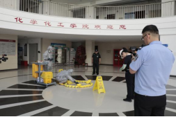 6月17日13:30,防盗抢应急演练在理化楼C212开展,模拟不法分子闯入场景,师生协同保卫人员,通过警戒、制服“歹徒”等环节,检验应急处置能力。14:00实验室危化品安全应急培训与演练活动在理化楼C501会议室正式启动。颜射