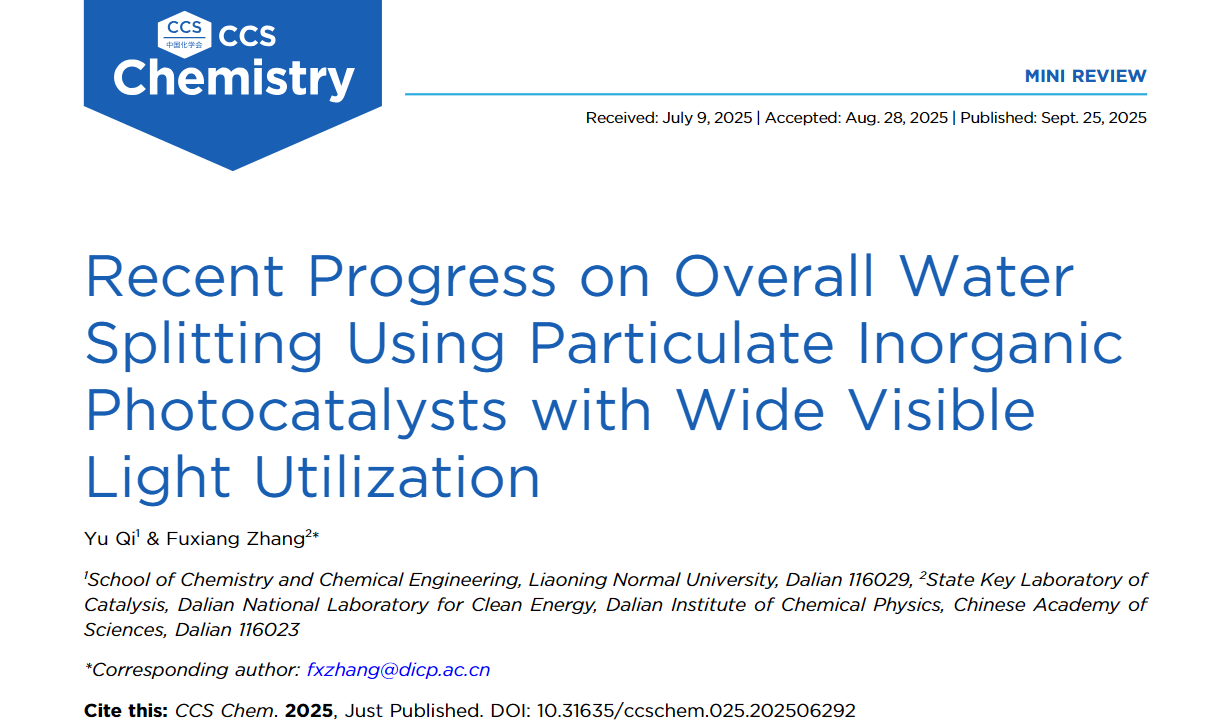 祁育副教授课题组CCS Chem.:宽光谱捕光无机半导体材料光催化全分解水研究最新进展